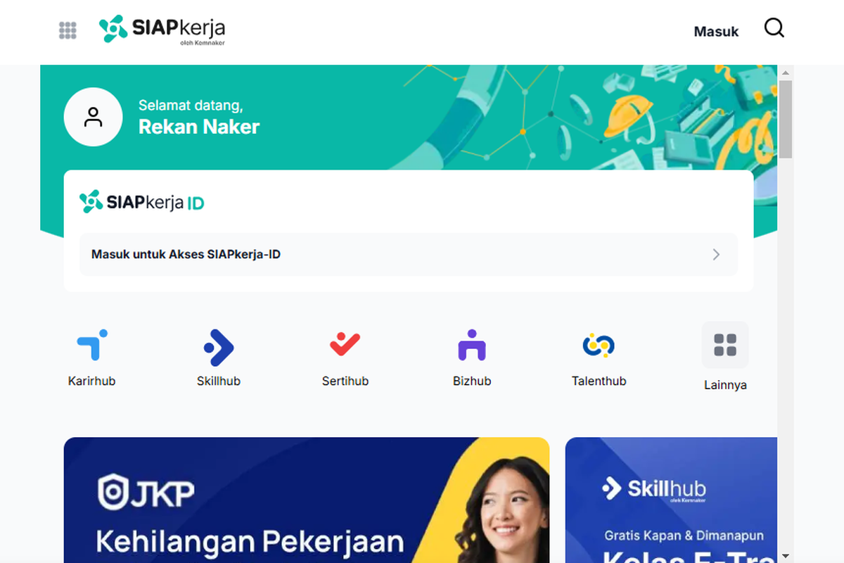 - Buka browser, ketik: siapkerja.kemnaker.go.id atau unduh aplikasinya.