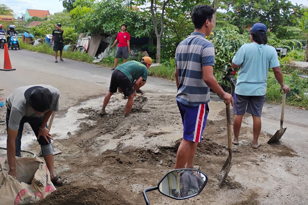 Langkah penambalan dengan material pasir dan semen ini ternyata bukan kali pertama. Warga sebelumnya pernah melakukan perbaikan mandiri, namun ketebalannya dinilai masih kurang sehingga kini dipertebal kembali oleh para pemuda desa.
