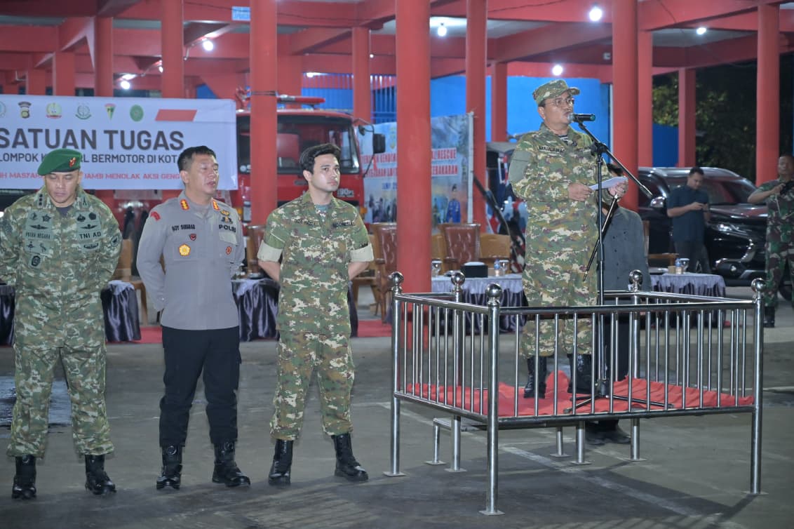 TarunaKota.com, Jambi – Walikota Jambi, Dr. dr. H. Maulana, M.K.M., menunjukkan komitmen serius dalam menjaga keamanan kota. Dipimpin langsung oleh Walikota Maulana, Satuan Tugas (Satgas) Penindakan Kelompok Kriminal Bermotor menggelar apel gabungan besar pada Kamis malam (16/10/2025) di Markas Damkar Kota Jambi.