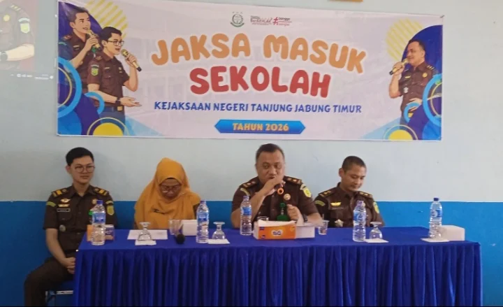 TarunaKota, Muara Sabak, 9 Februari 2026 – Kejaksaan Negeri Tanjung Jabung Timur (Kejari Tanjabtim) terus memperkuat komitmennya dalam mencetak generasi muda yang sadar hukum. Melalui program unggulan “Jaksa Masuk Sekolah” (JMS), korps Adhyaksa ini turun langsung ke tengah pelajar untuk memberikan edukasi mengenai pencegahan kekerasan di lingkungan pendidikan.