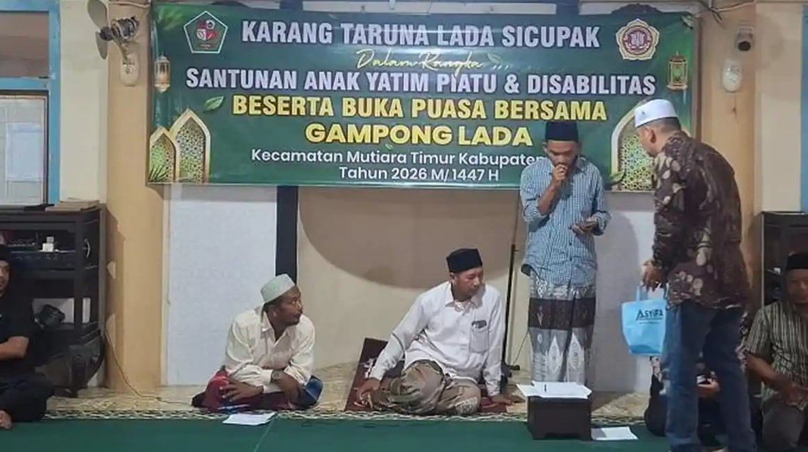 Dana tersebut disalurkan langsung kepada 24 anak yatim dan 12 penyandang disabilitas dalam acara buka puasa bersama di Dayah Gampong Lada, Minggu (15/03/2026). Rinciannya, setiap anak yatim piatu menerima uang tunai sebesar Rp 3.700.000, sedangkan penyandang disabilitas menerima Rp 1.300.000. Selain uang tunai, mereka juga menerima paket sembako berupa beras, gula pasir, dan sirop.
