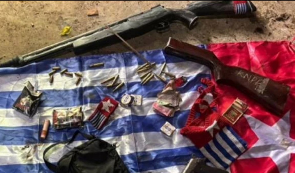 “Setelah memukul mundur kelompok bersenjata, petugas melakukan penyisiran dan menemukan sebuah rumah yang dijadikan markas. Di dalamnya ditemukan senjata api, amunisi, hingga bendera Bintang Kejora,” ujar Letkol Wirya di Jakarta, Rabu (25/03/2026).