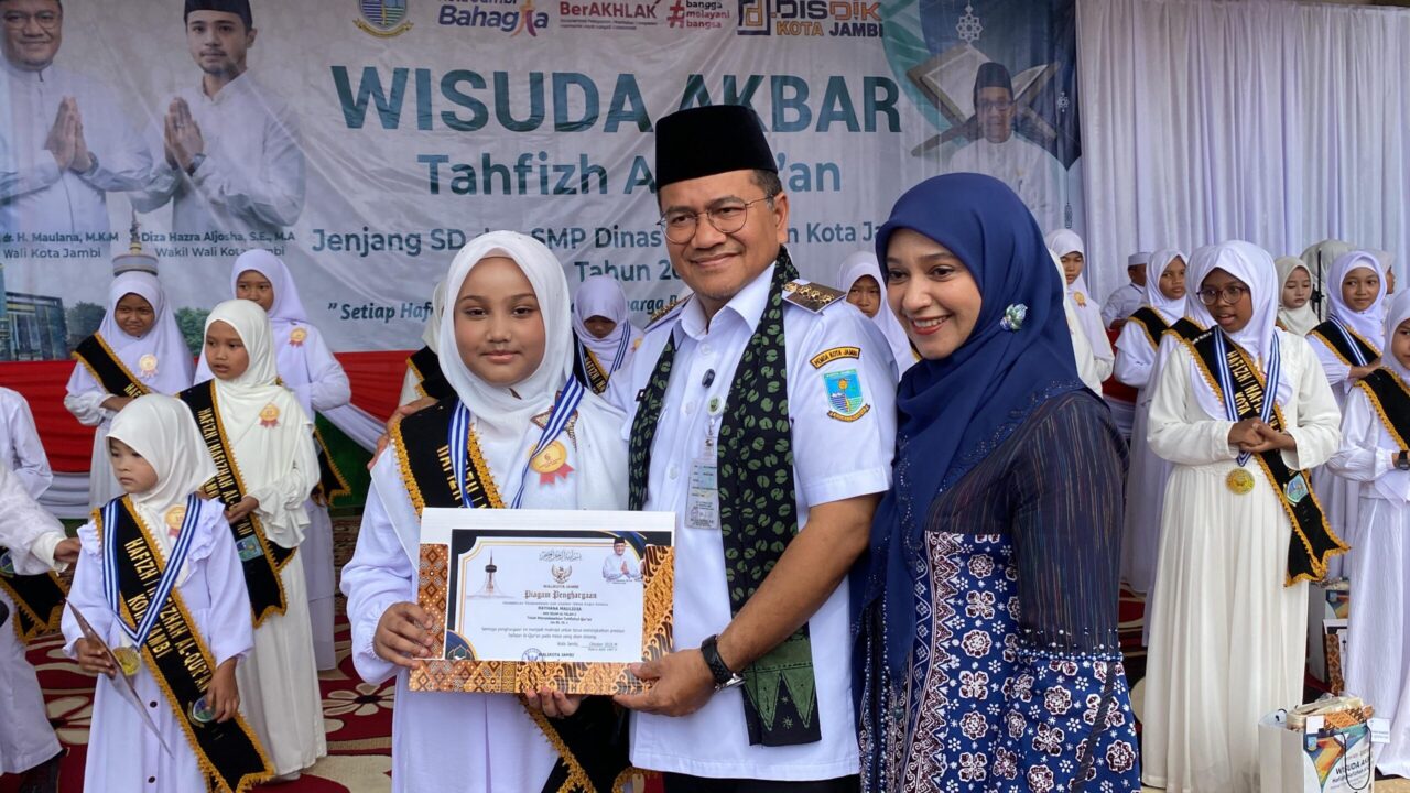 Tahun ini, sebanyak 1.787 pelajar tingkat SD dan SMP di Kota Jambi resmi diwisuda sebagai penghafal Al-Qur’an. Dari jumlah tersebut, 50 pelajar terbaik berhasil menorehkan prestasi luar biasa, dengan sebagian besar mampu menghafal 25 hingga 30 juz.