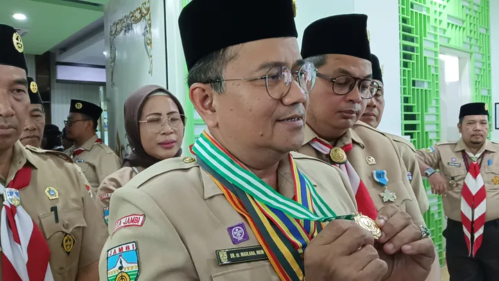 TarunaKota.com, Jambi – Dedikasi Wali Kota Jambi, Dr. dr. H. Maulana, M.K.M., dalam membina karakter generasi muda melalui kepanduan membuahkan apresiasi tertinggi. Kwartir Daerah (Kwarda) Gerakan Pramuka Provinsi Jambi secara resmi menganugerahkan penghargaan sebagai Tokoh Perintis Utama Gerakan Pramuka kepada Maulana di Rumah Dinas Wali Kota Jambi, Sabtu (11/04/2026).