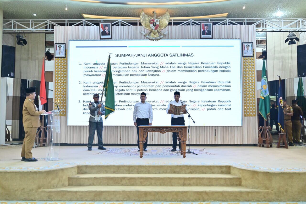 Pengukuhan ditandai dengan pembacaan sumpah dan janji oleh perwakilan Satlinmas serta penyematan tanda keanggotaan yang dilakukan langsung oleh Wali Kota Maulana, didampingi Wakil Wali Kota.